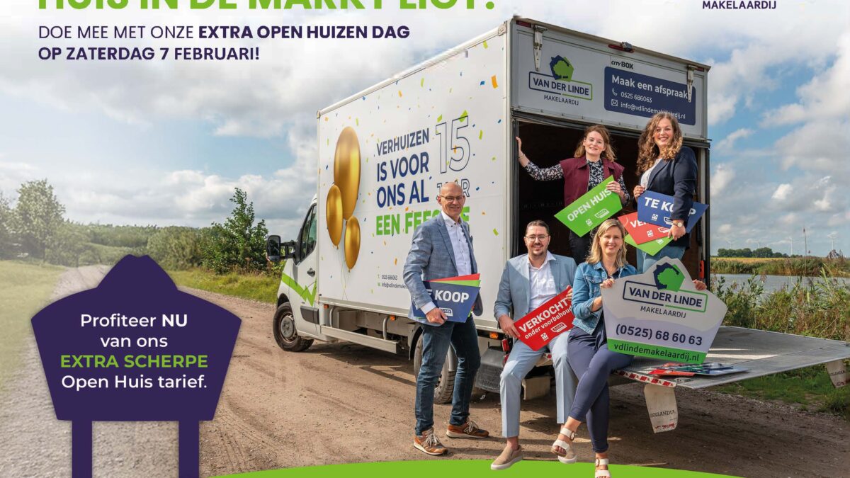 Onze Extra Open Huizen Dag is de uitgelezen kans om te ervaren hoe jouw huis in de markt ligt. Op deze dag openen de deelnemende huiseigenaren hun deuren voor geïnteresseerden, het kan nét het extra duwtje zijn wat een verkoopproces nodig heeft. Of wil je er achter komen of er animo is voor jouw huis? Doe mee en profiteer van de extra aantrekkelijke actievoorwaarden. KLIK HIER voor het plannen van een gratis waardebepaling én ontvang een vrijblijvende offerte.