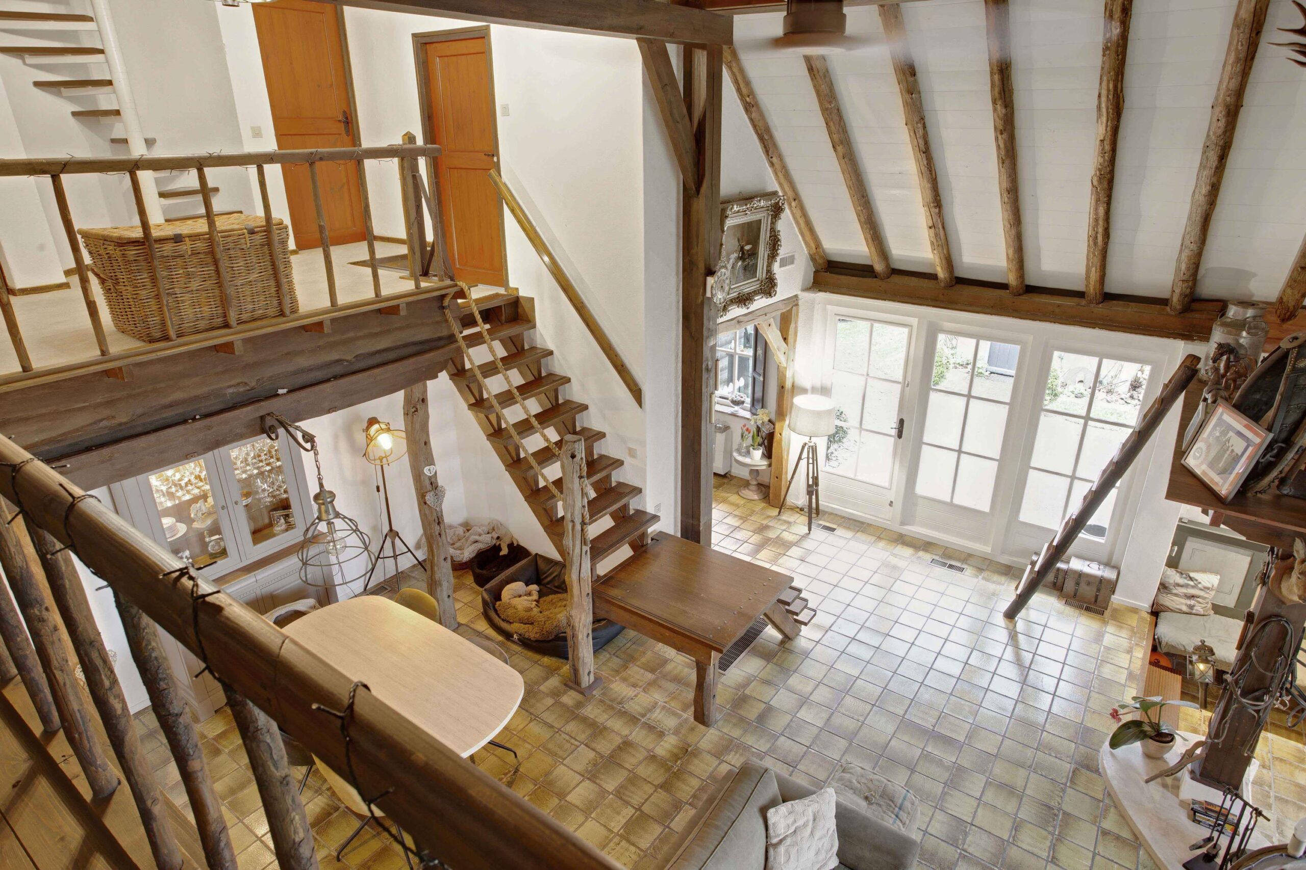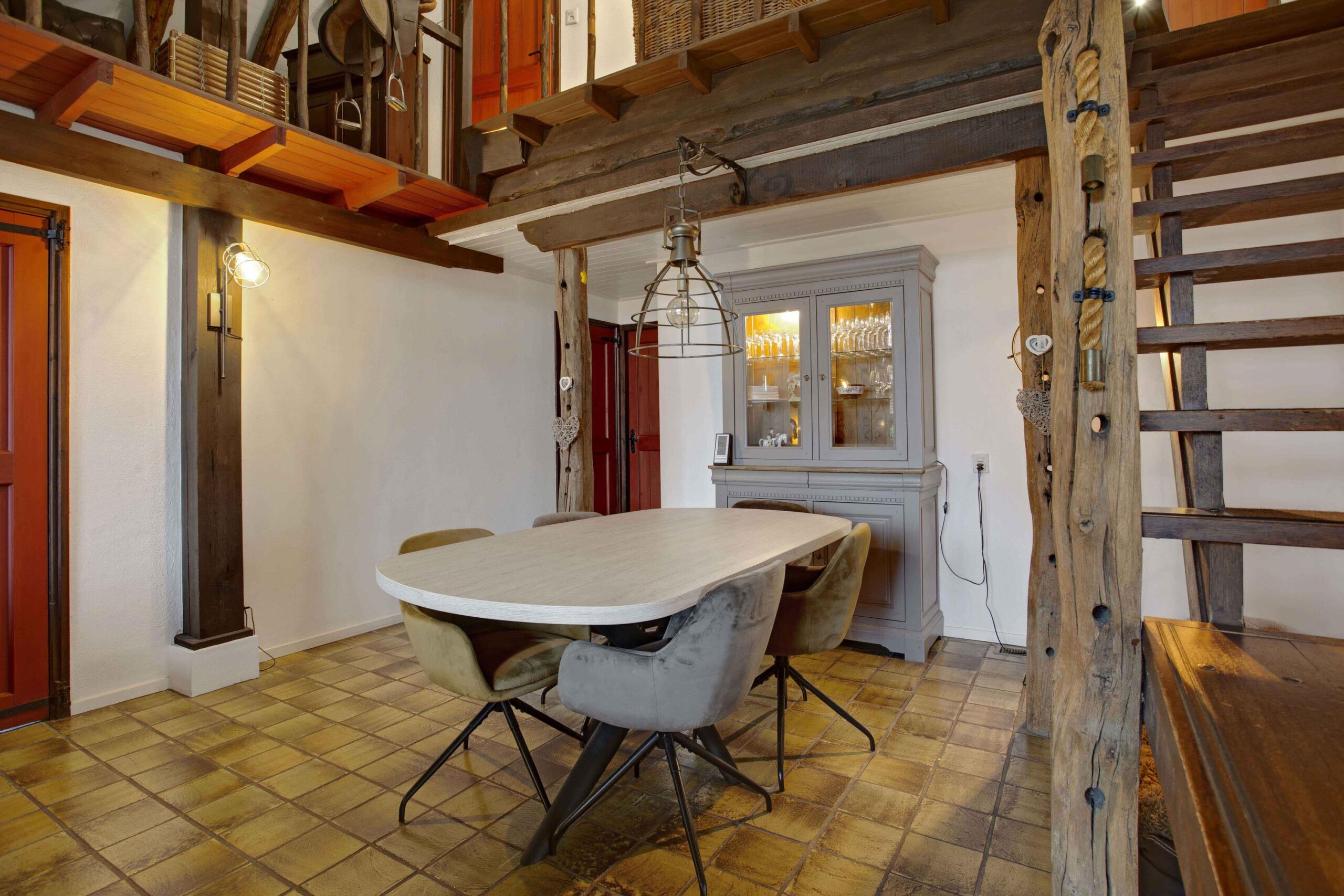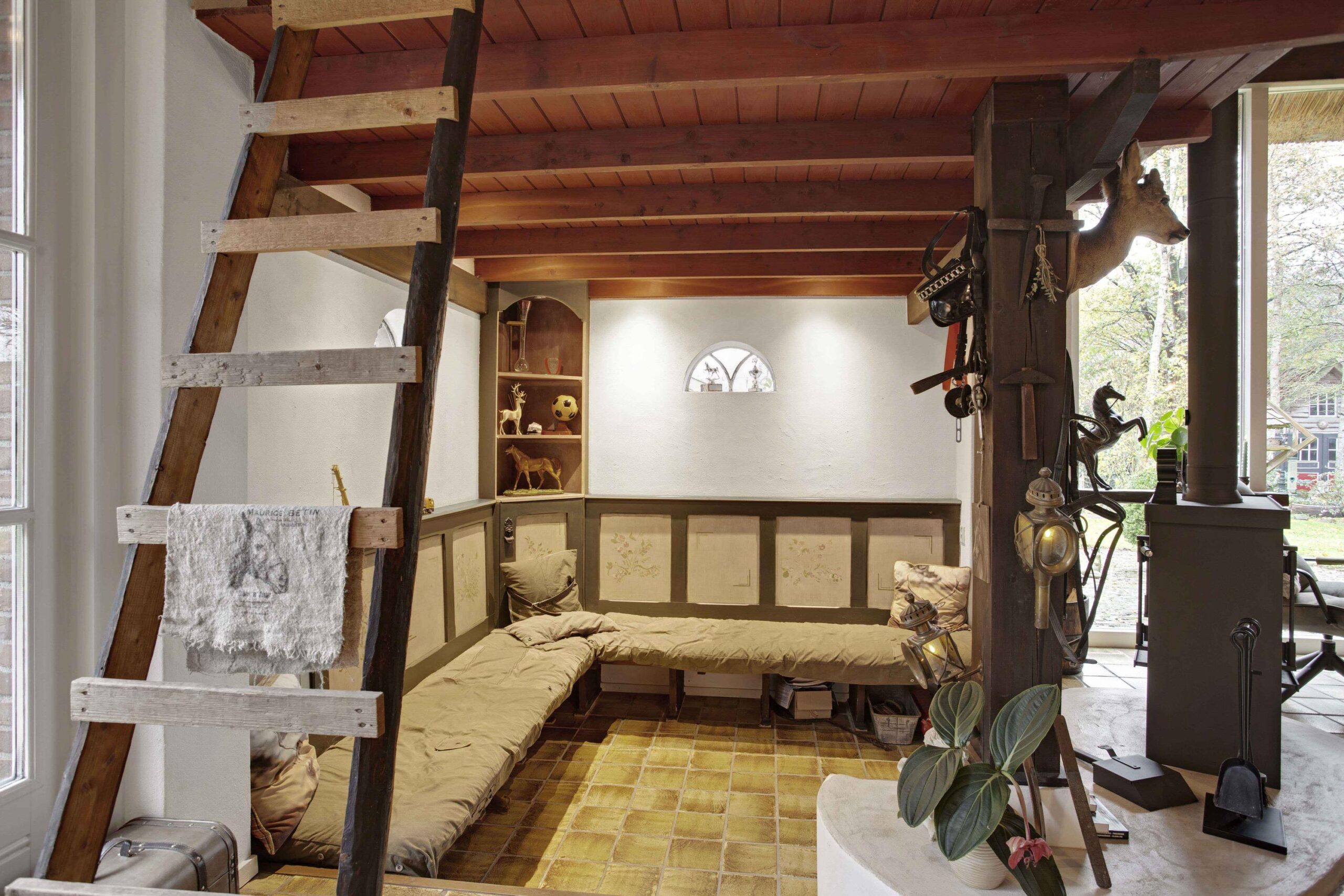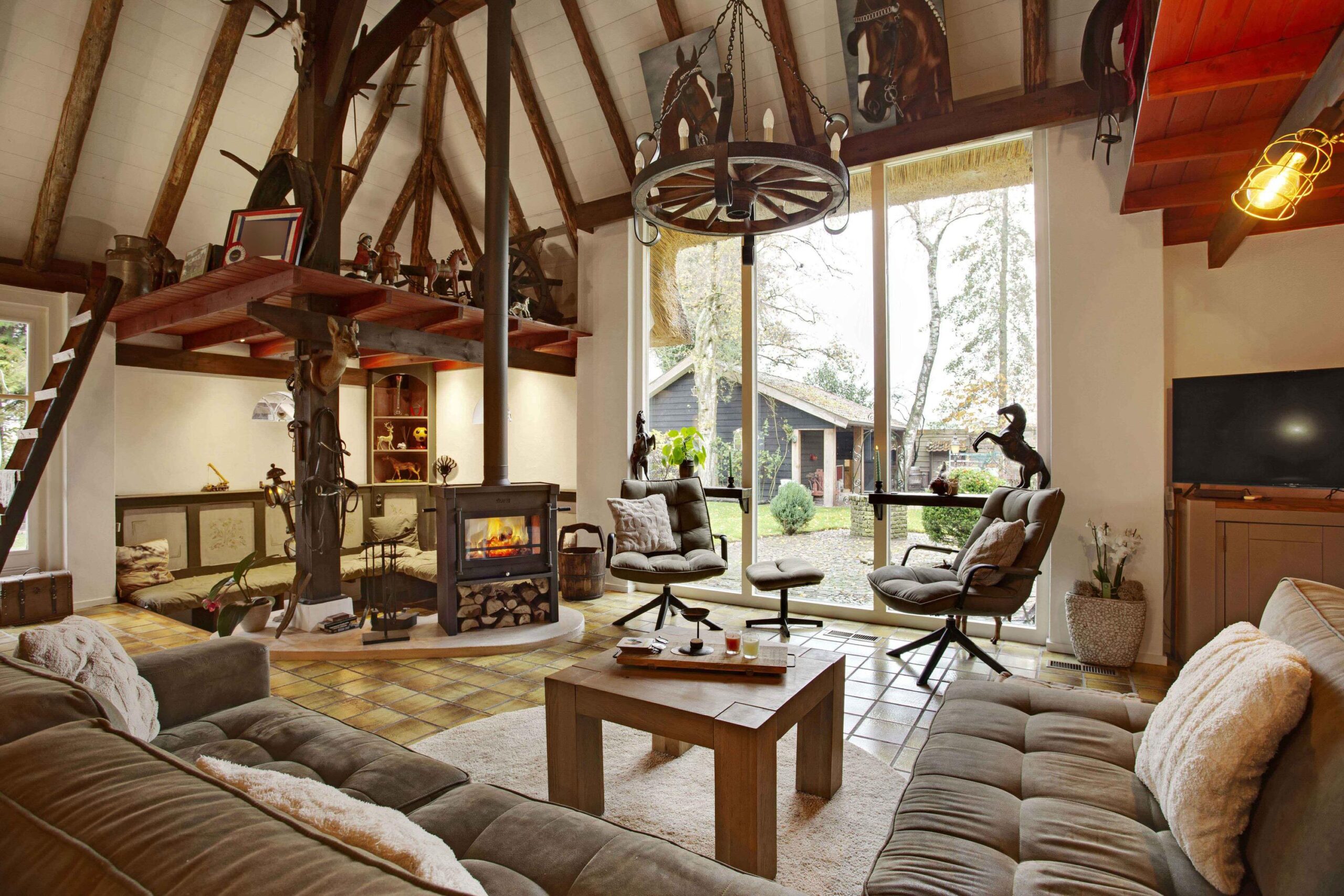 Zodra je het erf betreedt, proef je de sfeer van het verleden gecombineerd met de kwaliteit van nu. Door de wederopbouw in de jaren '70 is de woonboerderij naar een hedendaags niveau getild. Het resultaat is een woning waarbij de ziel van vroeger perfect samengaat met modern wooncomfort. Dankzij de goede isolatiekwaliteit biedt deze woonboerderij een verrassend hoge energieprestatie, iets wat zelden voorkomt bij dit type woningen. De voormalige stallen vormen het kloppende hart van het huis. Hier vind je een imposante woonkamer met vide, waar het hoge plafond, de houten gebinten en het spel van licht en ruimte samen een spectaculaire woonbeleving creëren. De zitkuil biedt in deze ruimte een intieme plek voor lange avonden bij de haard, terwijl de overige leefruimtes juist een open en luchtig gevoel geven. Overal zijn oude details zichtbaar die zorgen voor warmte, authenticiteit en charme. Een woonkamer zoals je deze werkelijk maar zelden tegenkomt.