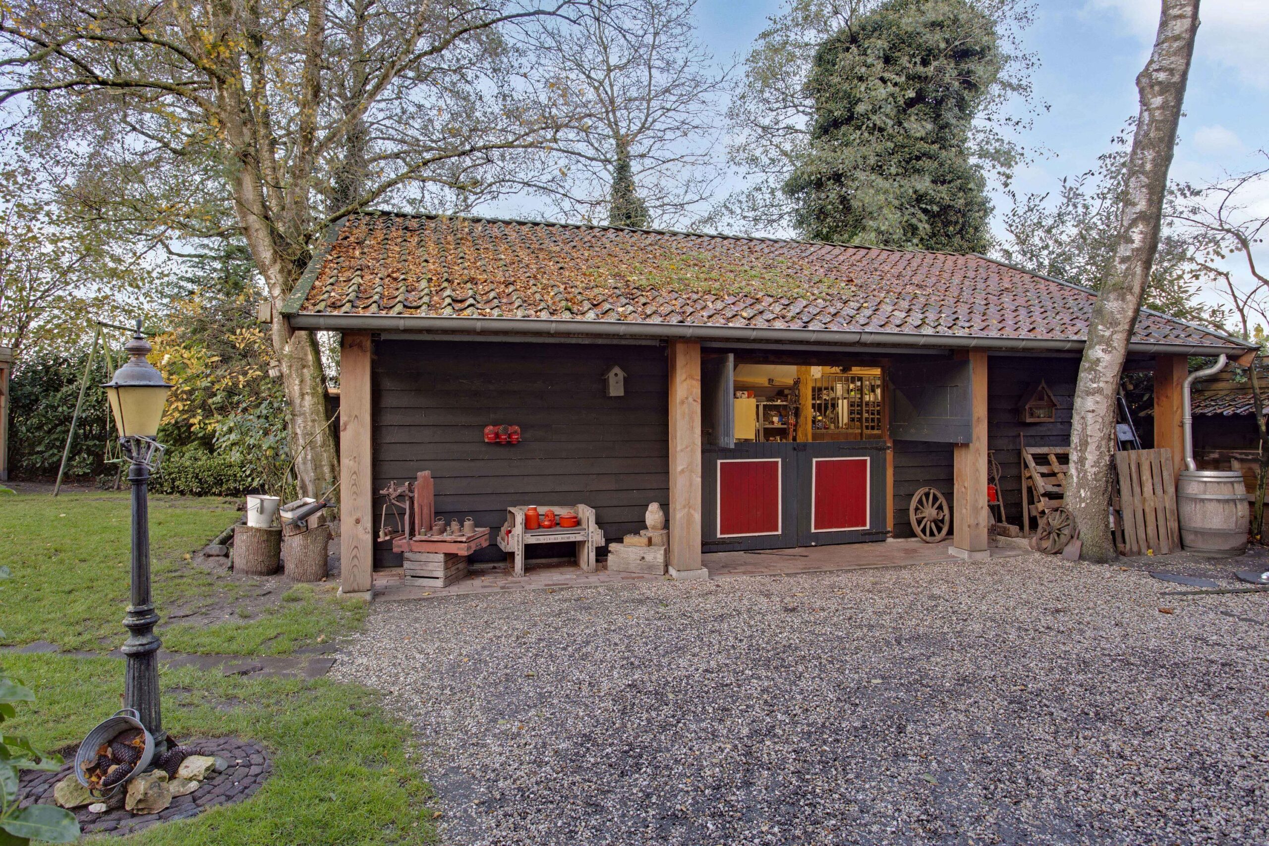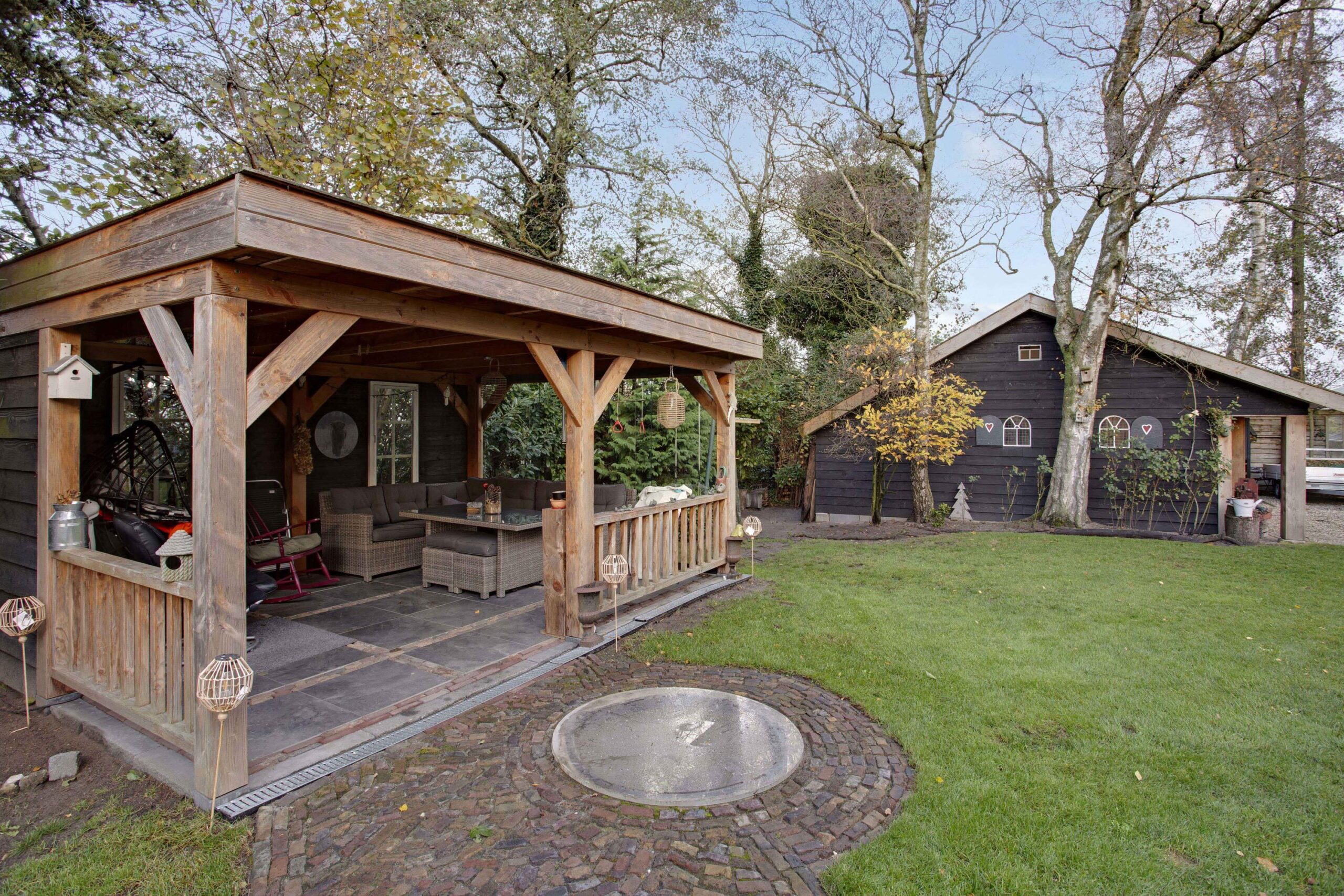 * Vrijstaande houten berging van ca. 3.45 meter x 3.00 meter v.v. elektra en vliering;