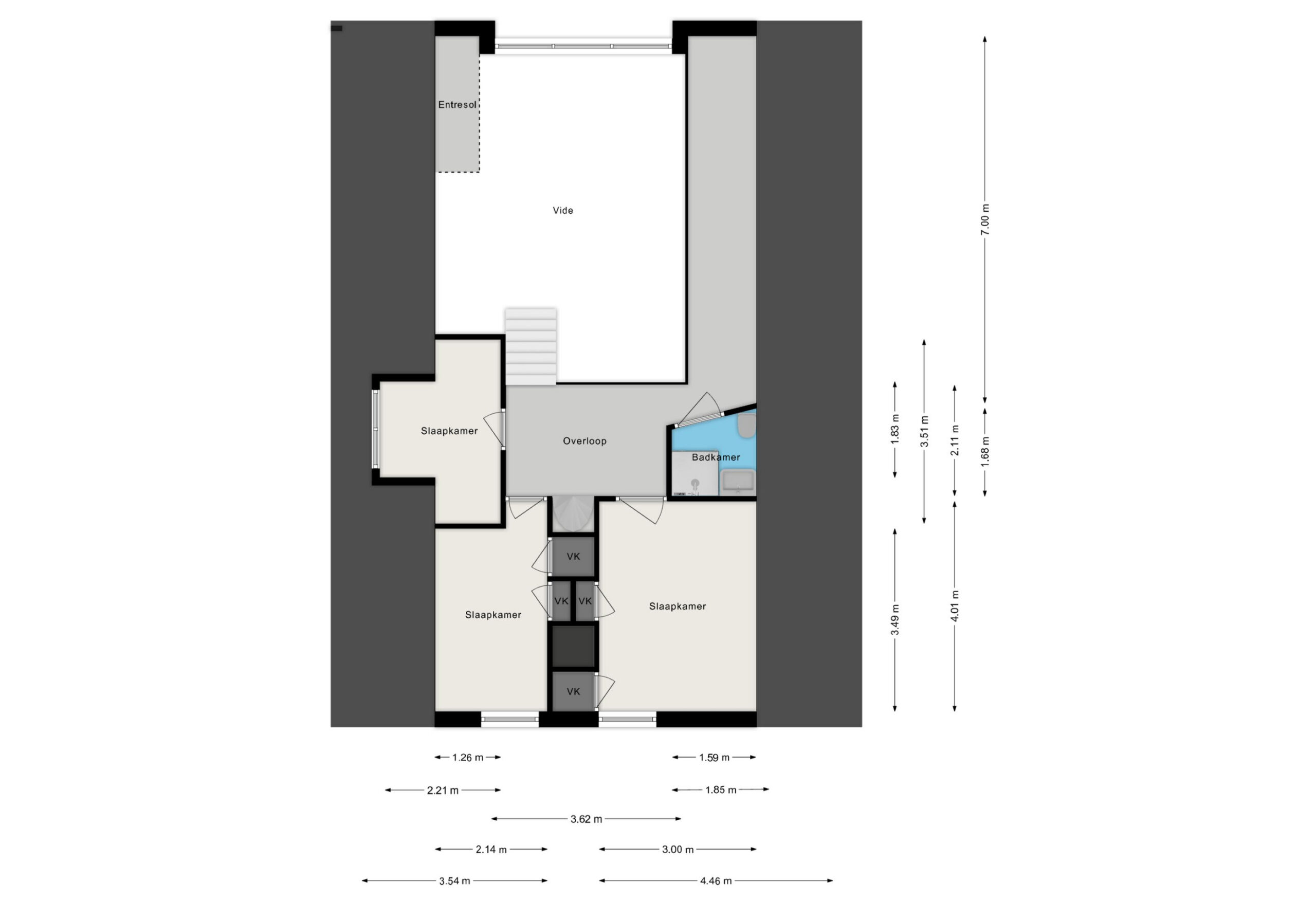 Overloop met uitzicht vanuit de vide over de living, 3 mooie slaapkamers van goede formaten v.v. vaste kasten, tweede nette badkamer v.v. toilet, wastafelmeubel en douchecabine. Vanaf de overloop is er nog een entresol / zolder beschikbaar geschikt als studeer of leeshoekje.