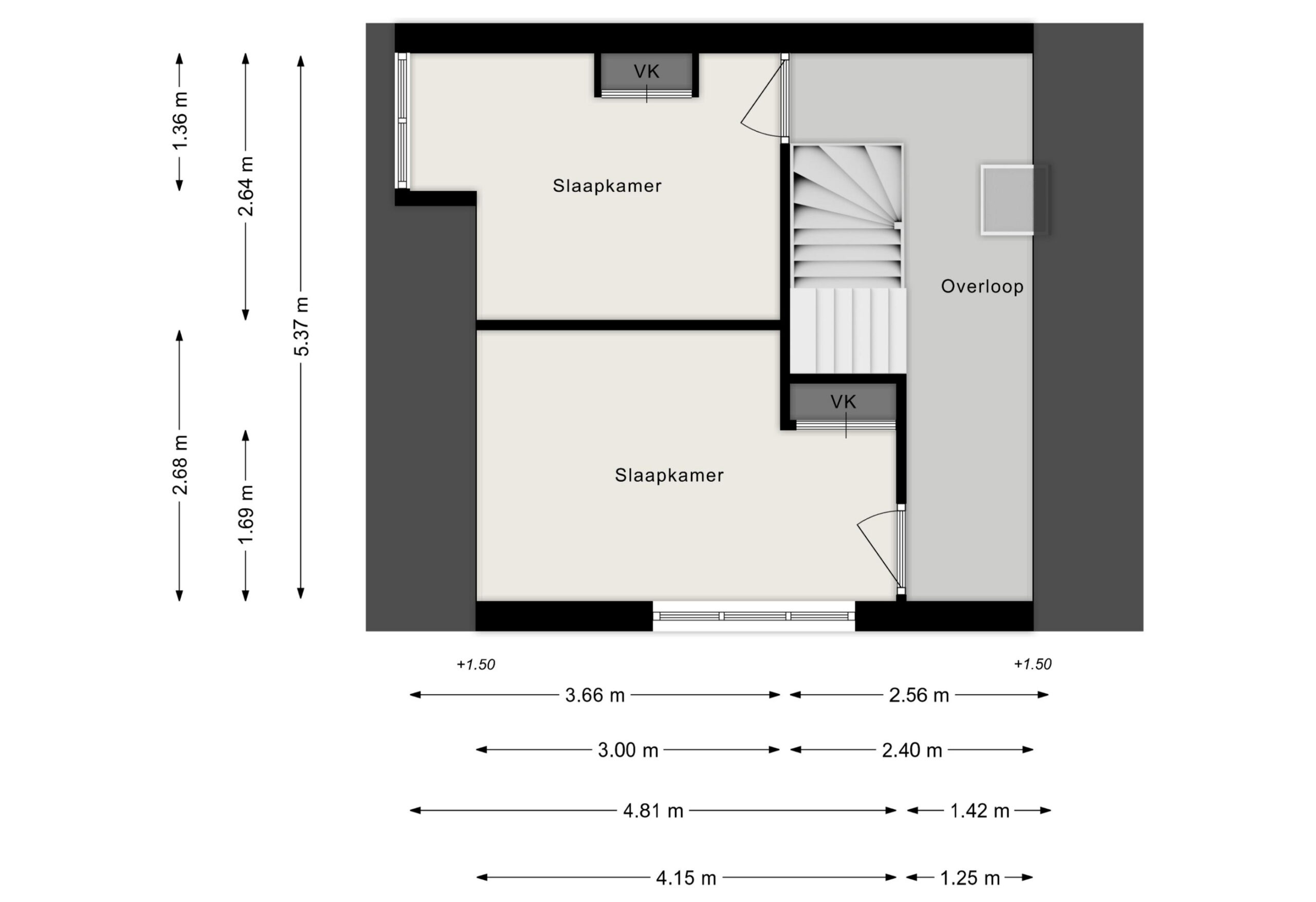 Via semi-vaste trap te bereiken bergzolder met stahoogte.