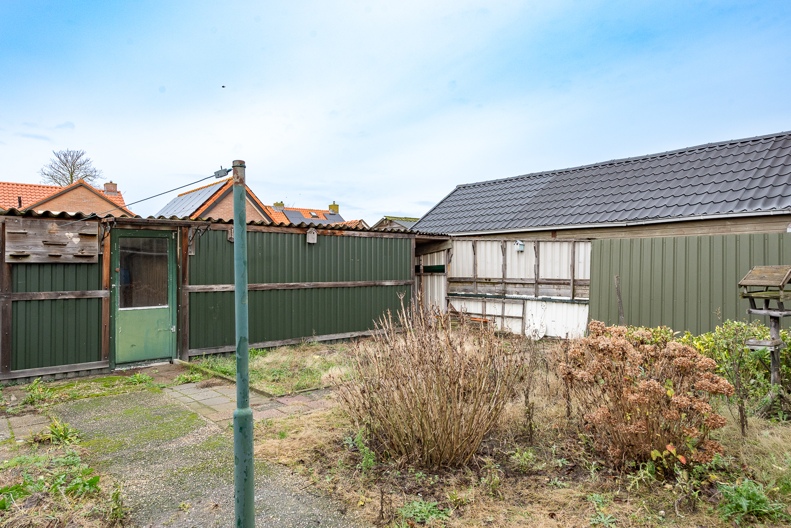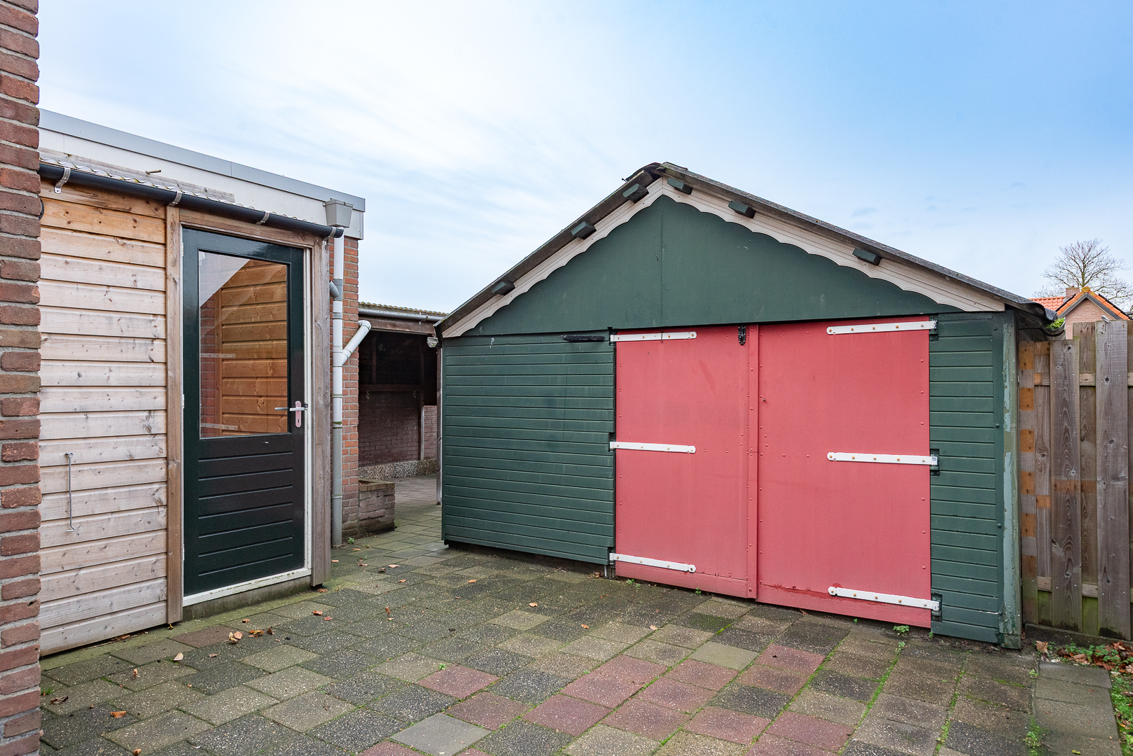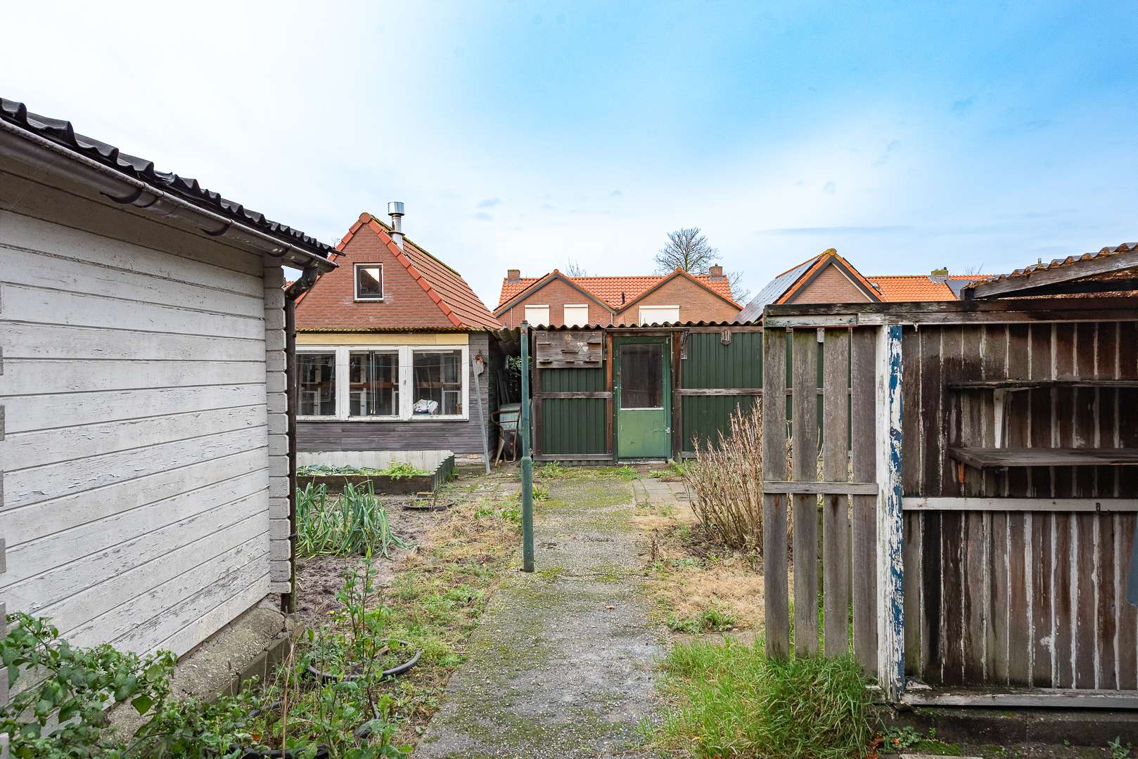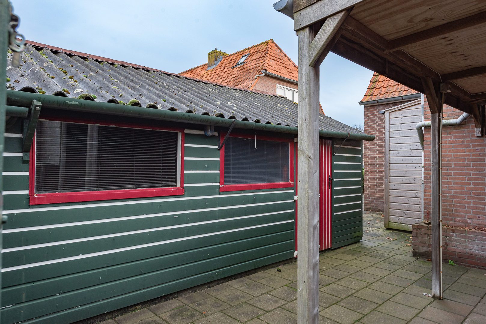 Eenvoudige aangelegde tuin van royale formaten / afmetingen met diverse opstallen zoals een houten veranda van ca. 2.50 meter x 4.10 meter, een houten berging van ca. 16 m² en een houten garage van ca. 7.60 meter x 3.90 meter v.v. elektra en gaskachel. Voor de woning ligt er nog een oprit waar plek is voor het parkeren van 1 auto.