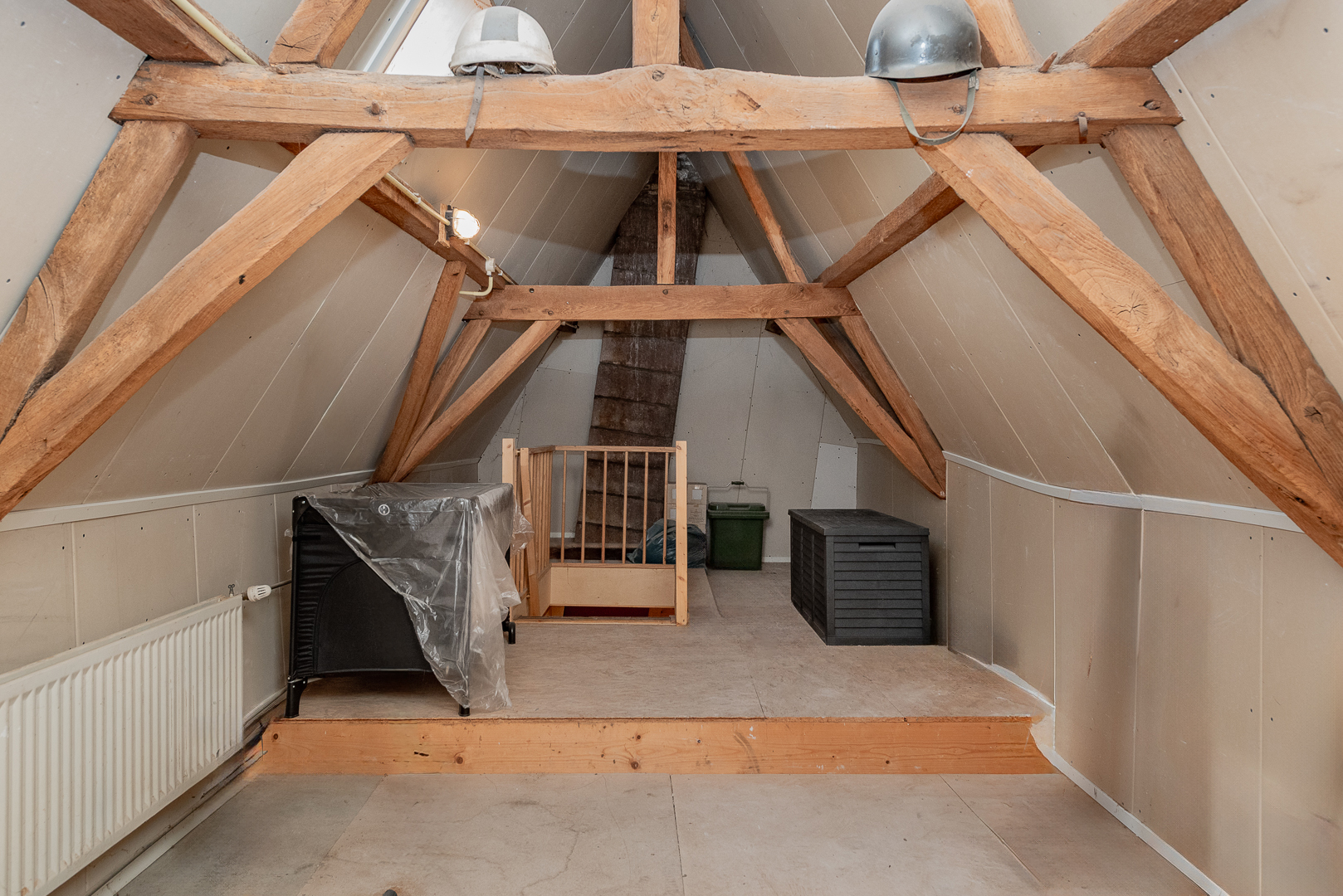 Via vaste trap te bereiken zolderverdieping, nu in gebruik als bergzolder, met mogelijkheden voor het realiseren van extra kamer(s)