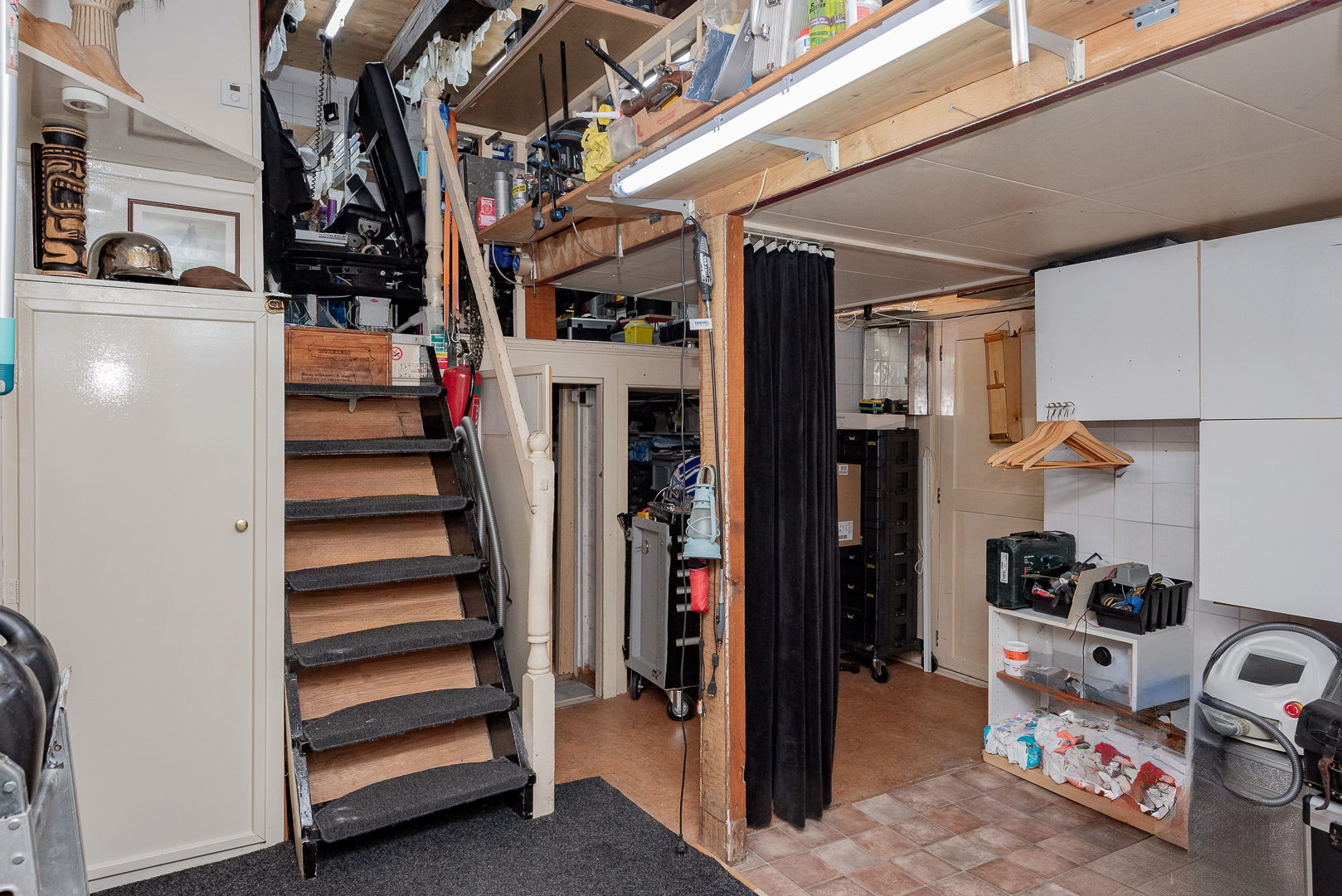 Inpandige garage van ca. 29 m² nu in gebruik als praktijkruimte, v.v. alle benodigde aansluitingen en eigen deuren naar buiten, ideaal als bergring en/of als kantoor-/praktijkruimte aan huis. In de garage bevindt zich ook de meterkast voor het gehele pand.