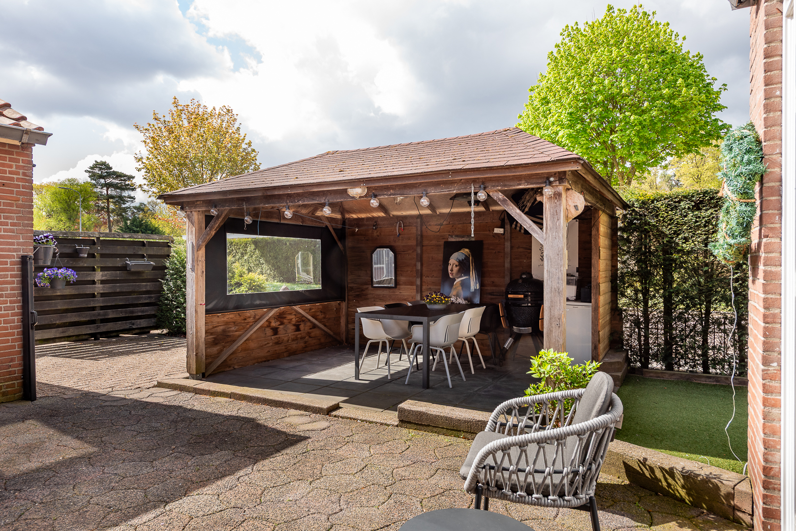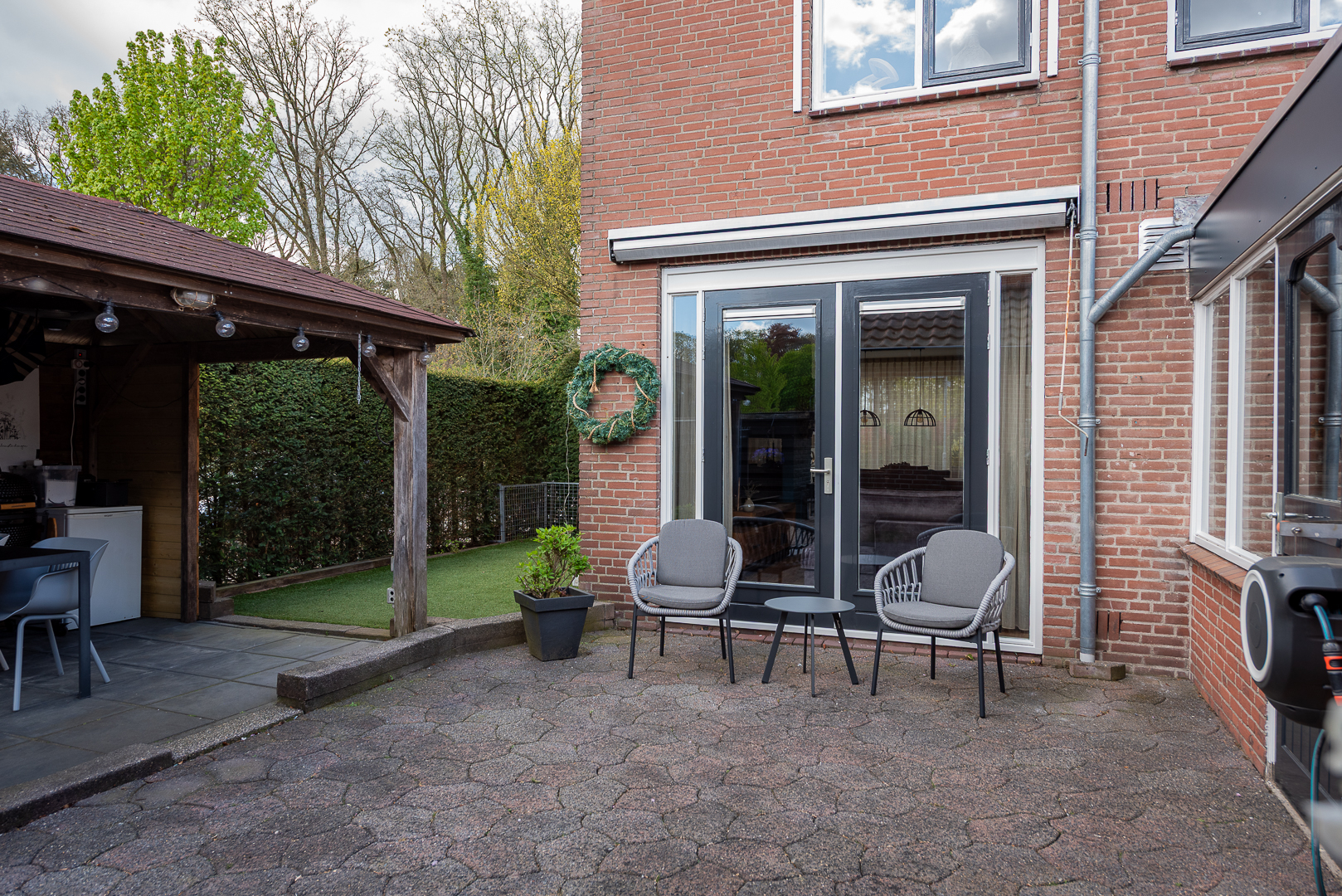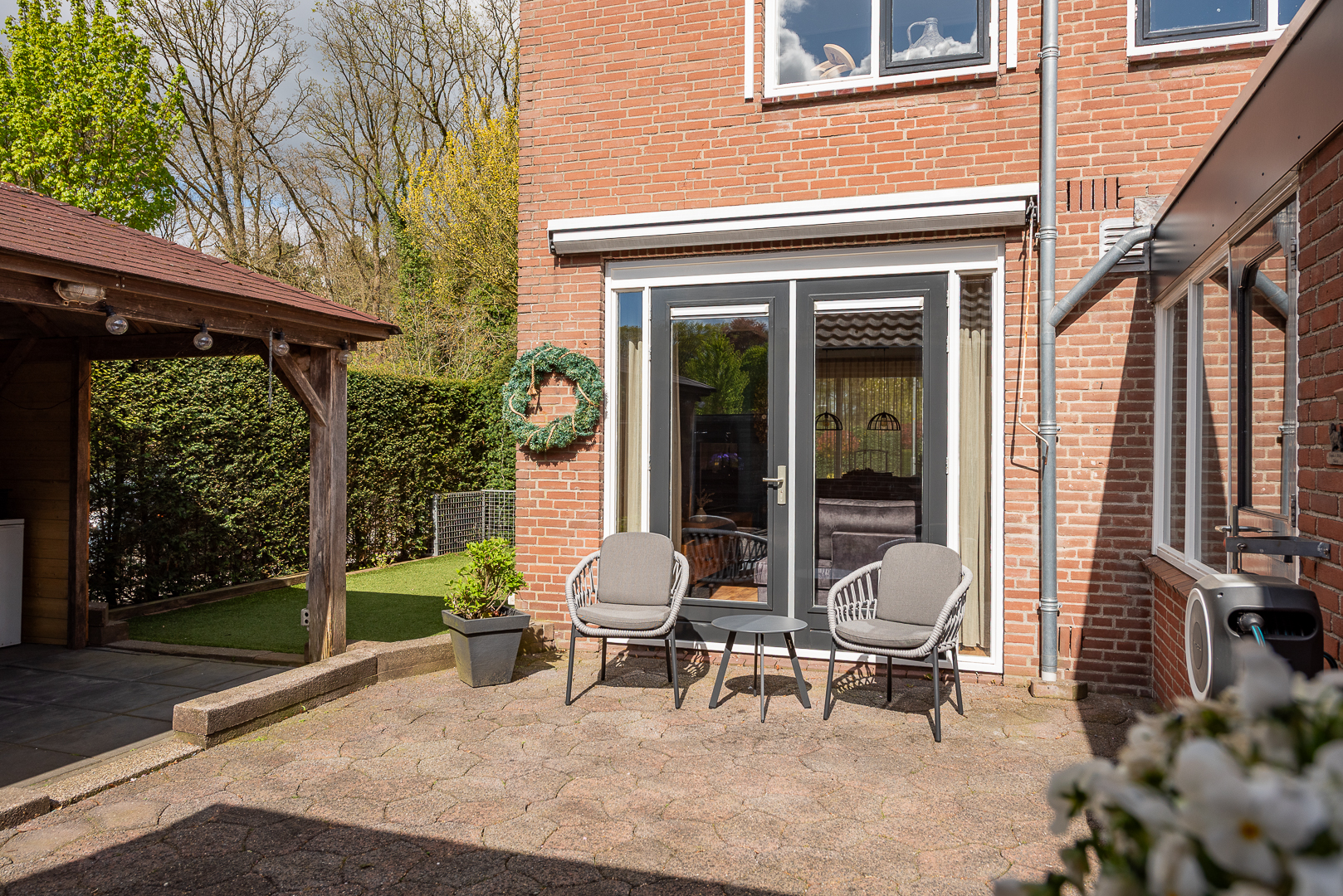 Onderhoudsarm aangelegde tuin met verrassend veel vrijheid en zon dankzij de ligging op een hoek aan de rand van de wijk. De tuin is keurig aangelegd en er is nog een gezellige veranda van ruim 4 bij 3 meter aanwezig. De tuin is op verschillende manieren bereikbaar.