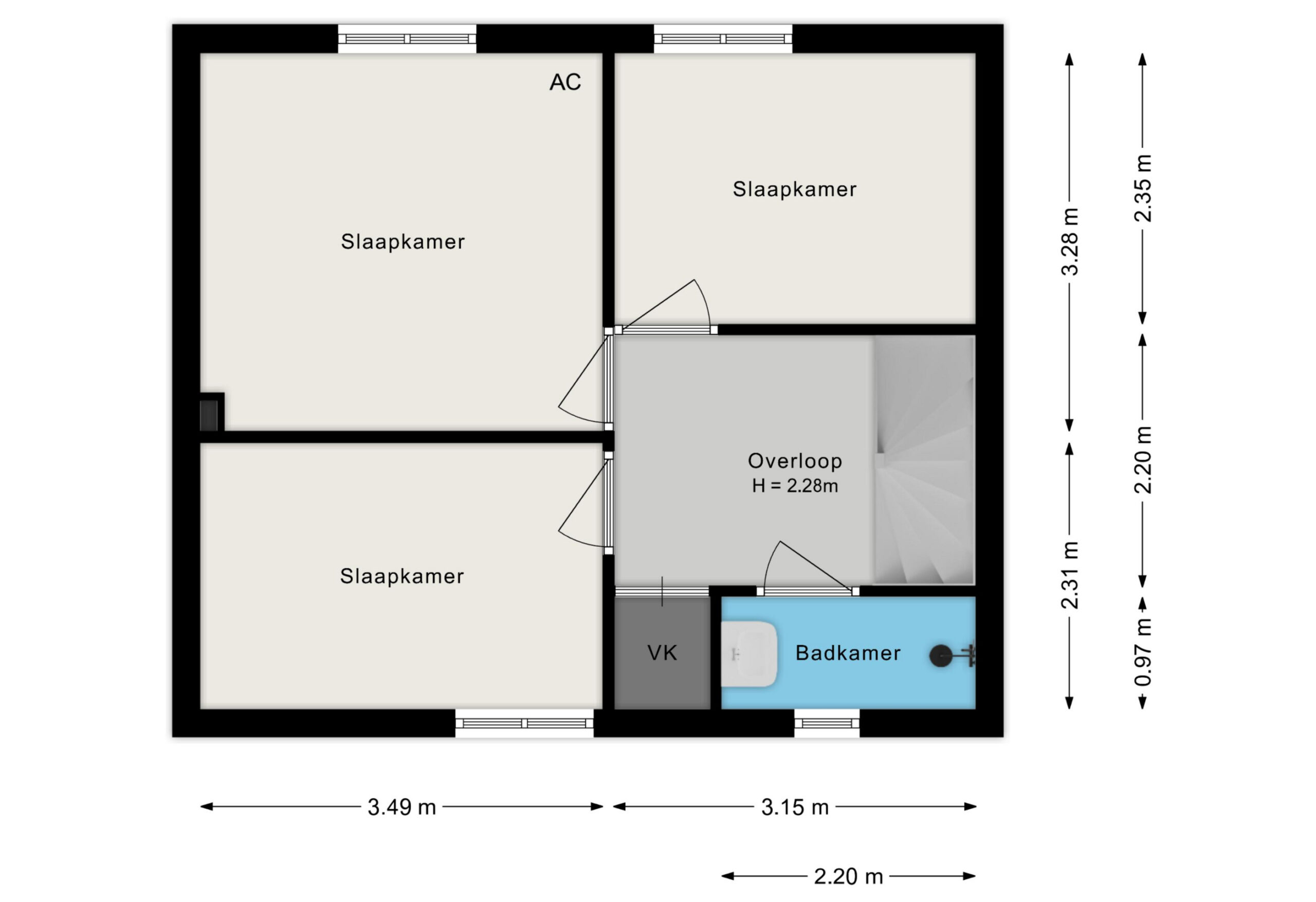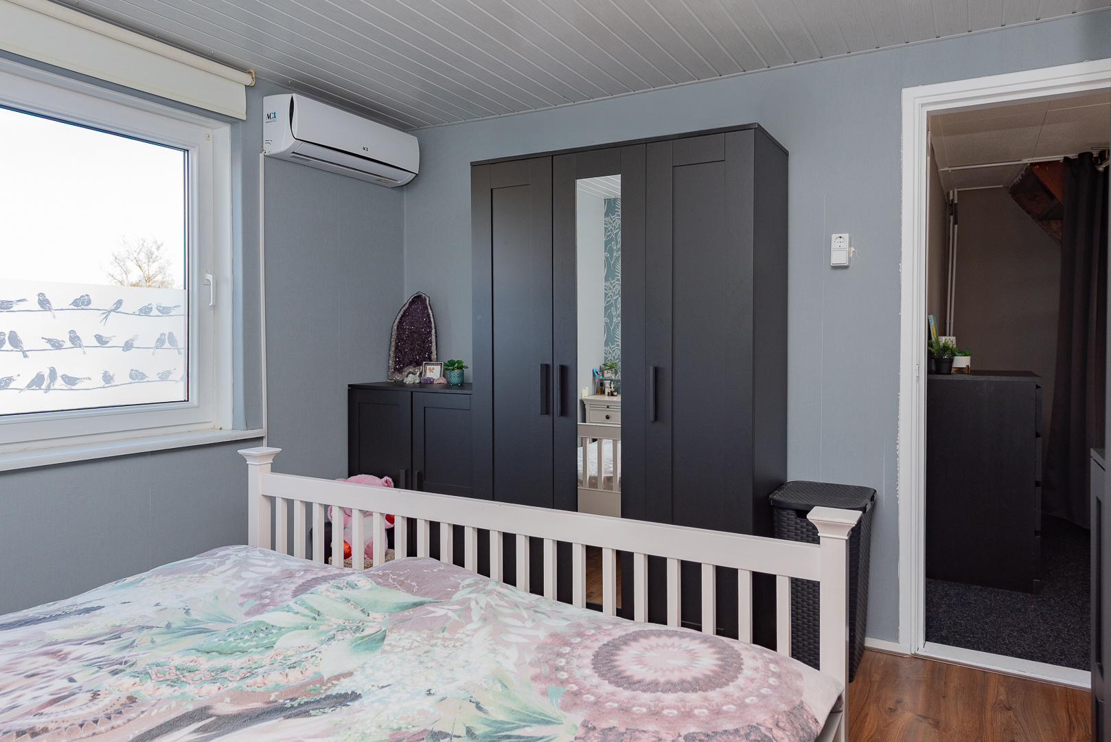 Overloop met vaste kast, trapopgang naar de tweede verdieping, ruime kinderslaapkamer aan de achterzijde van ca. 7.50 m², ruime ouderslaapkamer aan de achterzijde van ca. 11.50 m² v.v. airconditioning, derde eveneens ruime slaapkamer aan de voorzijde van ca. 8 m², gemoderniseerde badkamer v.v. wastafel en douchehoek. Alle slaapkamers zijn v.v. rolluiken.