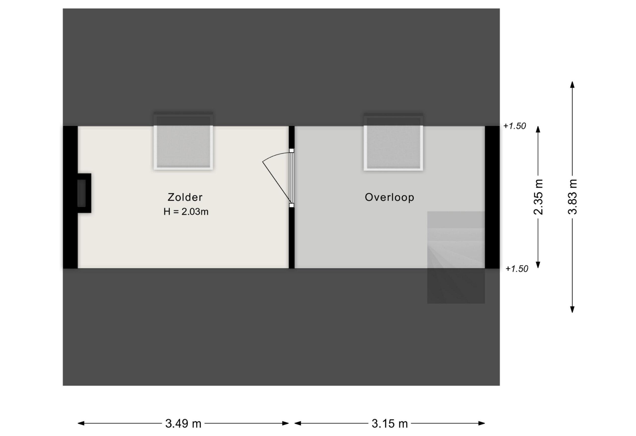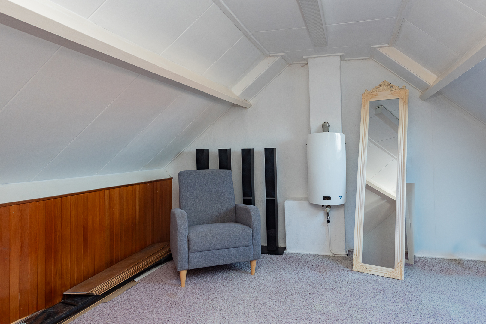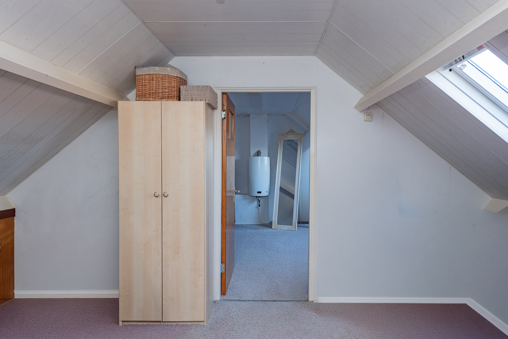 Via vaste trap bereikbare zolderverdieping nu ingericht als bergzolder met berging, dakramen en mogelijkheid voor een vierde slaapkamer.