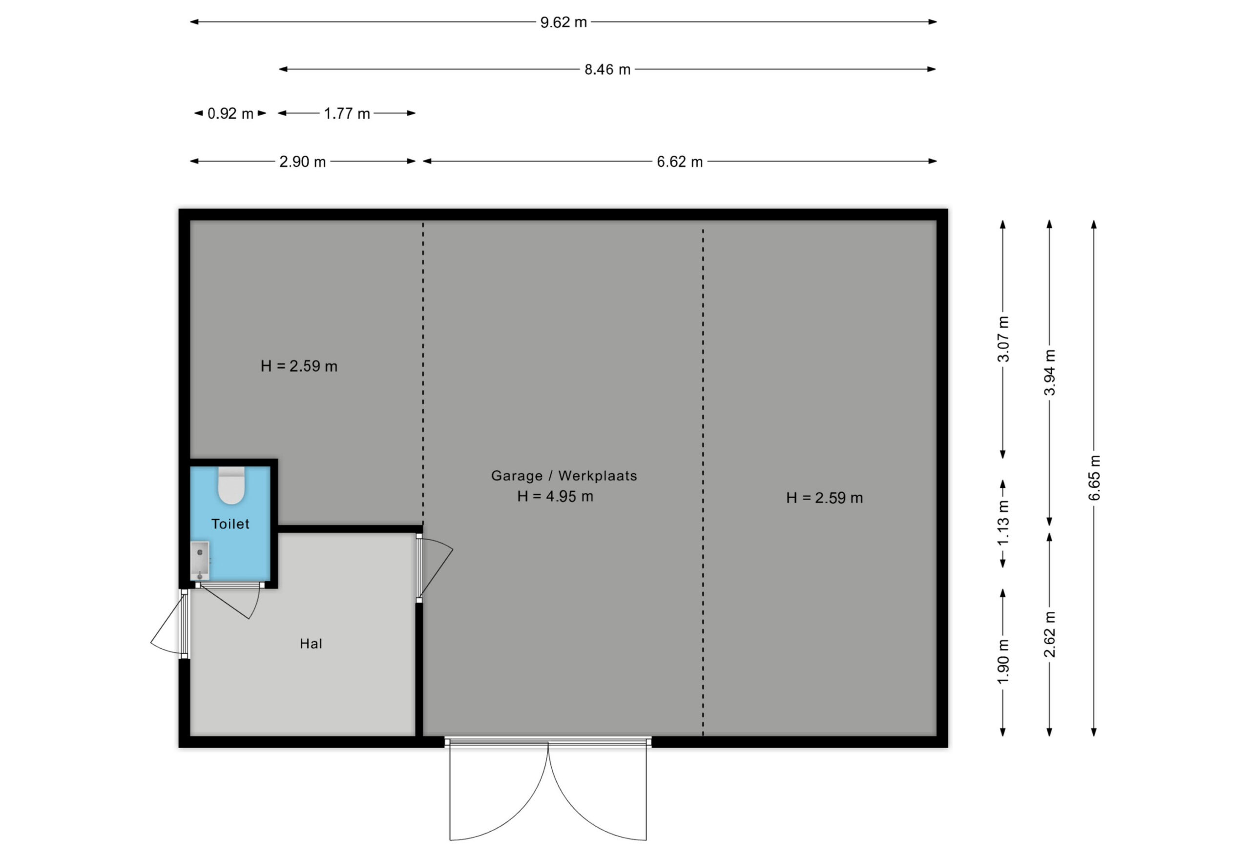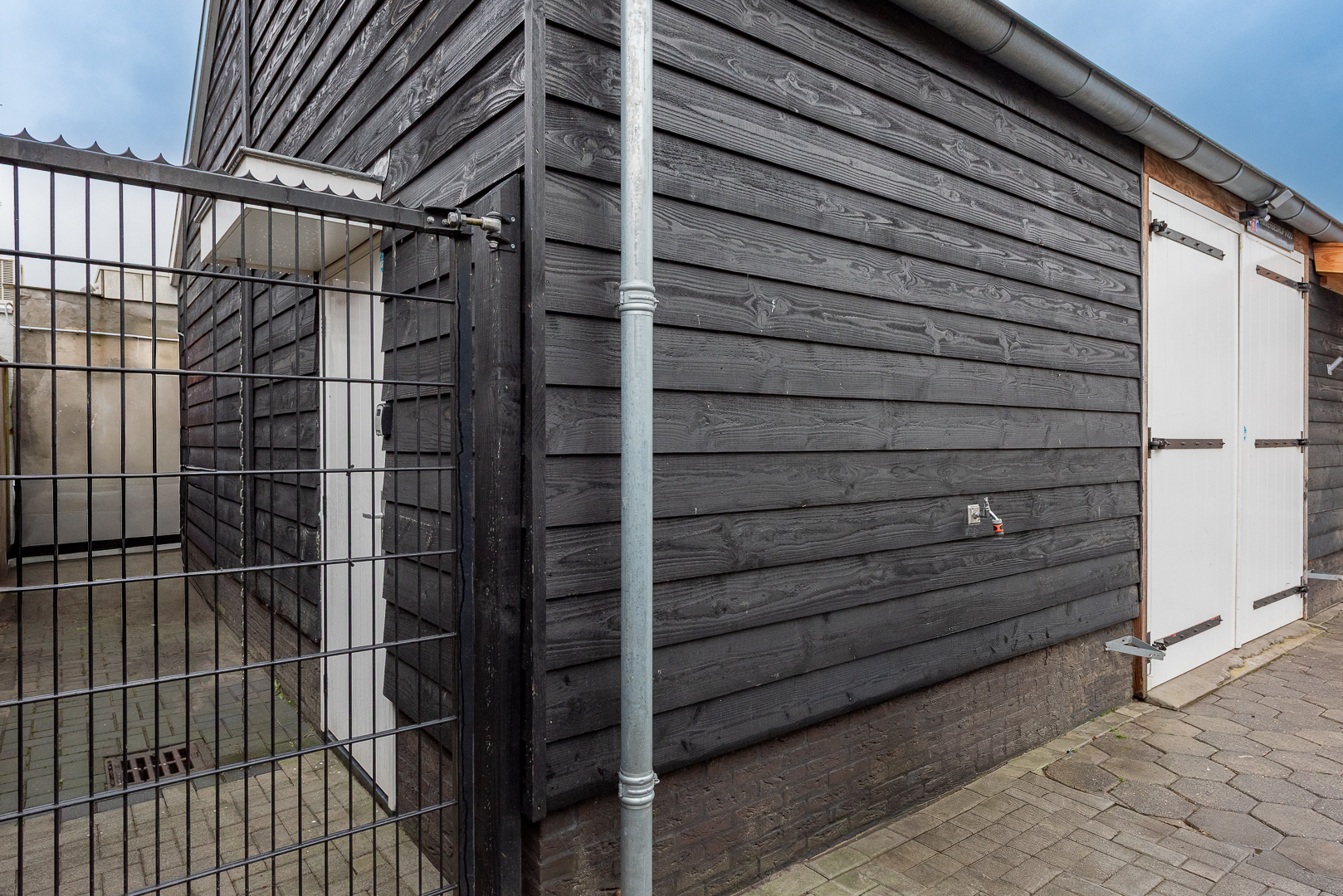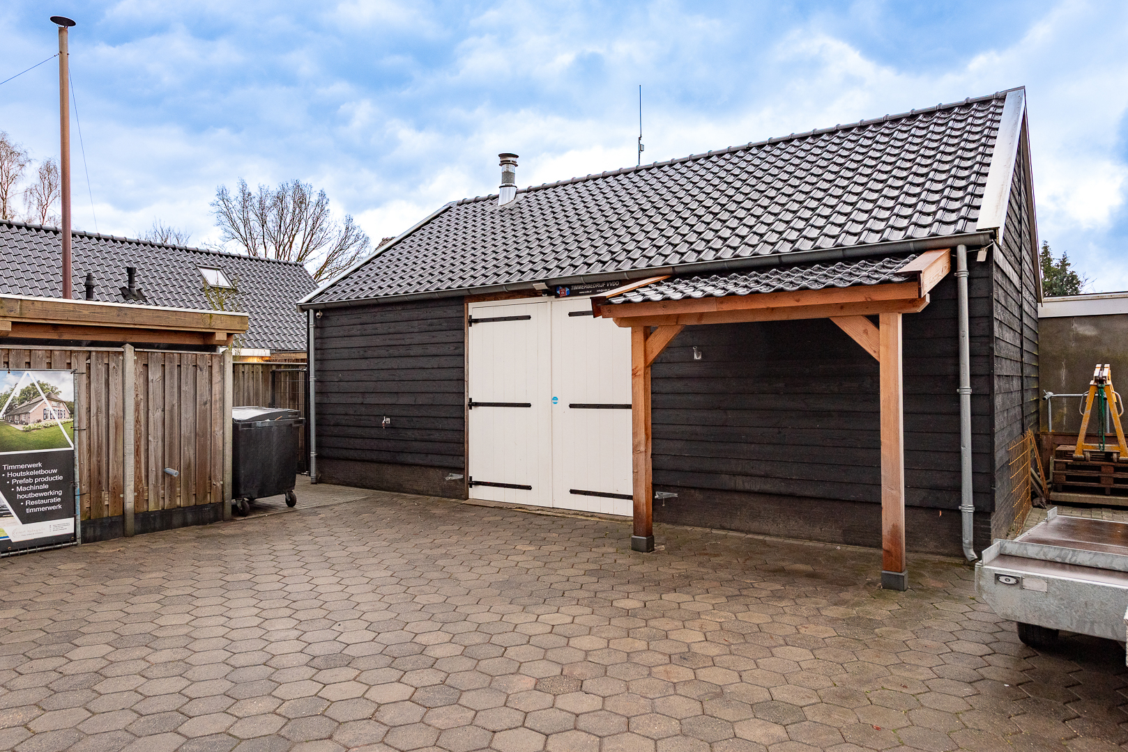 Garage / werkplaats van circa 9,60 bij 6,65 meter. Dit bijgebouw is gebouwd in 2018 en opgetrokken uit een betonnen fundatie, stalen spanten als draagconstructie, een stenen borstwering en daarop geplaatste geïsoleerde houtskeletbouw wanden. Het dak bestaat uit geïsoleerde sandwichpanelen en daarop dakpannen. Het dak van het bijgebouw is in 2023 tevens voorzien van 16 zonnepanelen met een opbrengend vermogen van circa 5.000 kW per jaar.