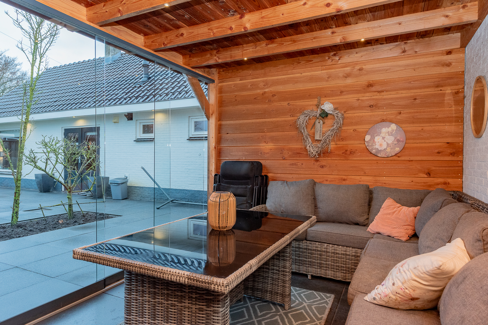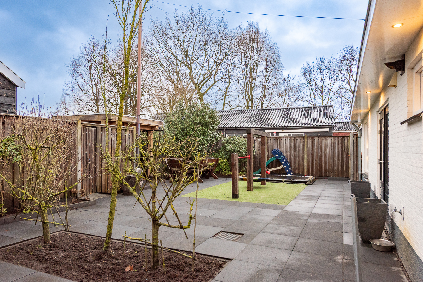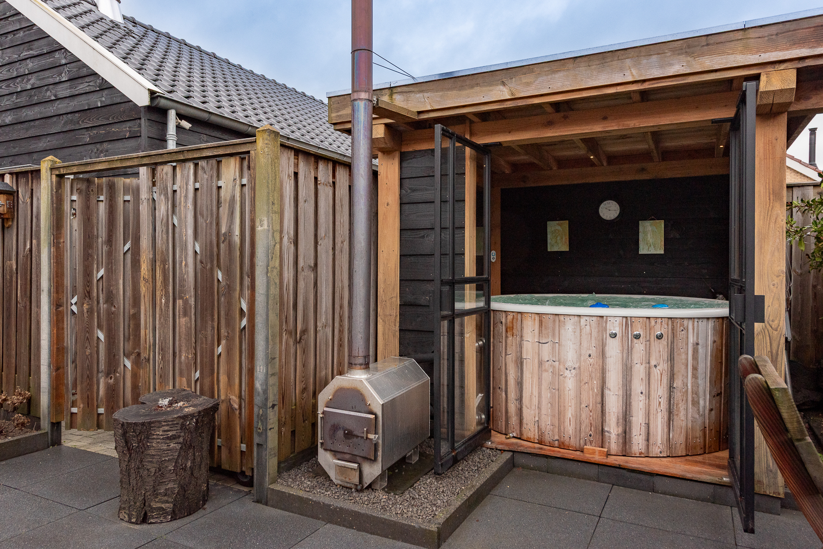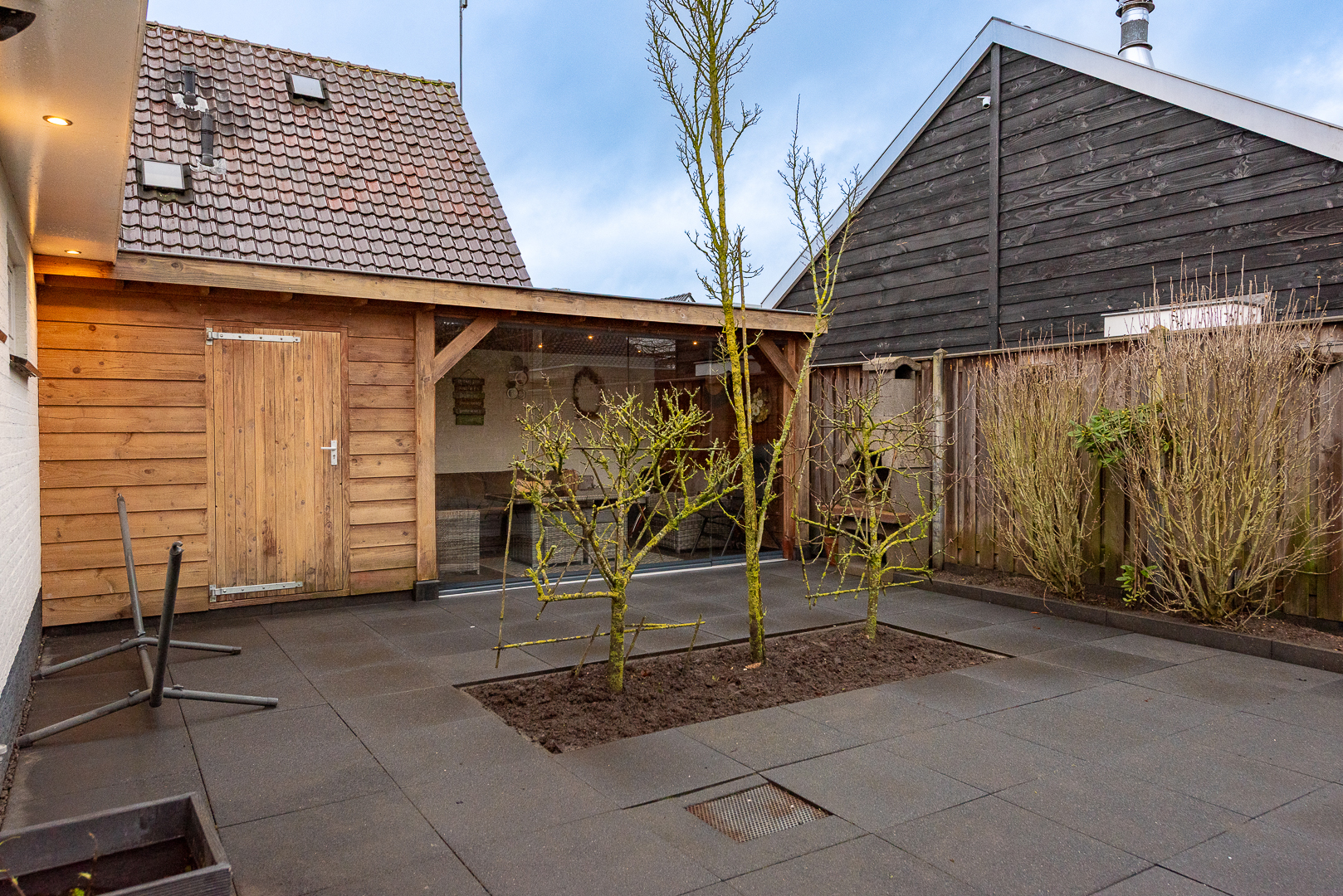 In de achtertuin van de woning is een handige berging gerealiseerd voor fietsen en tuinspullen. Ook is er een overdekt terras / veranda (bouwjaar 2016) en een overkapping voor de hottub gemaakt. De tuin is onderhoudsarm aangelegd en zowel voor de woning als ook achter de woning is voldoende ruimte om meerdere auto's te parkeren.