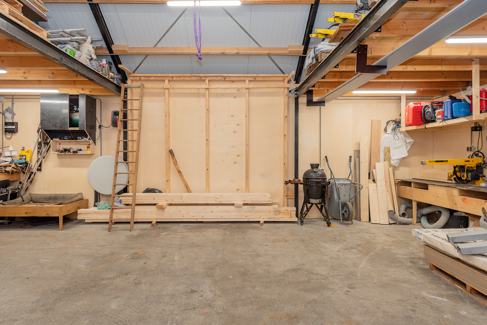 Klapper op de vuurpijl is het riante bijgebouw. Op het achtererf is een mooie werkplaats gebouwd in 2018. Ideaal voor een echte klusser of ZZP'er. De werkplaats heeft een mooie hoogte en kan voor diverse doeleinden worden gebruikt. De wanden en het dak van de loods zijn geïsoleerd, er is een toiletruimte in de loods en de ruimte is voorzien van handige extra's zoals verwarming (pijp voor haard en houtkachel), mogelijkheid voor krachtstroom, perslucht, voldoende stroom en een handige entresol / verdieping. De oppervlakte op de begane grond is circa 65 m² en er zijn nog 2 zolders gerealiseerd met een (vloer)oppervlakte van bij elkaar circa 36 m² extra bergruimte.